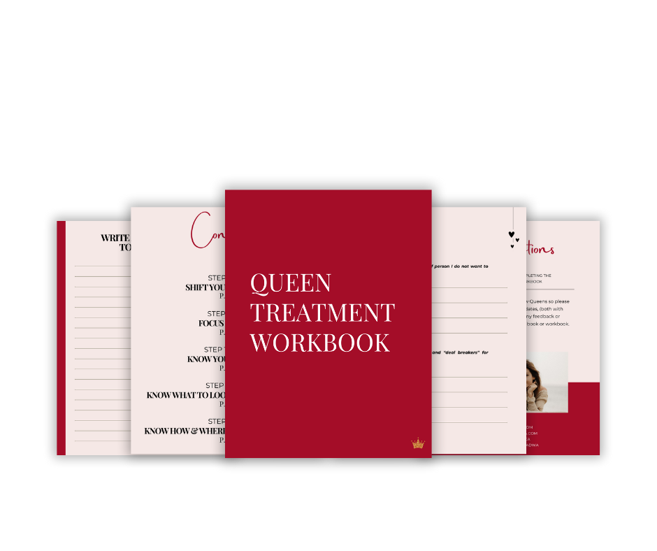 Sign up here to receive access to the Queen Treatment Workbook, where you will have east access to all the guided meditations referenced in the book, as well as the therapeutic exercises, and journal prompts where you can type your personalised reflections.